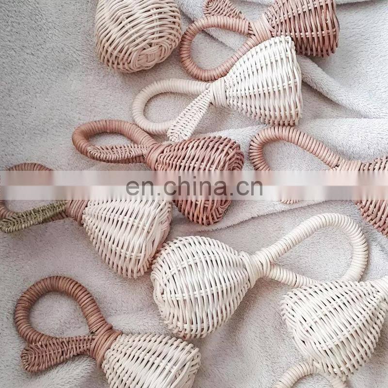 Hot Sale Bleached White Rattan Rattle Hand Bell Wicker Baby Bohemian Toys Hanging Play Gym Best Price Wholesale Supplier