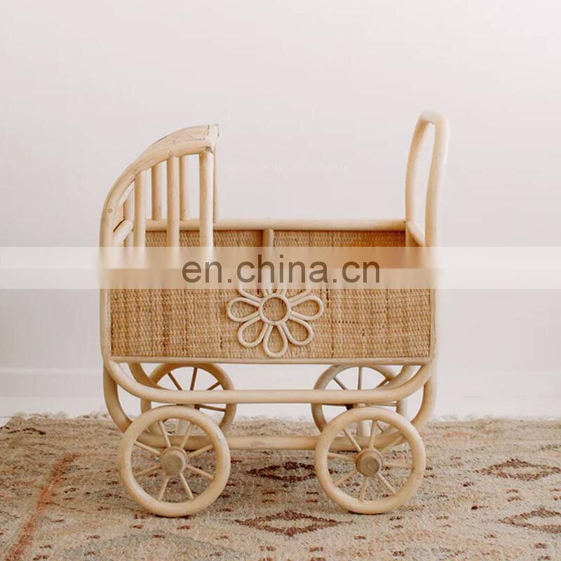 New Arrival Children's Rattan Stroller on Wheels TROLLEY for doll Daisy Rattan dolls Pram Wholesale Supplier