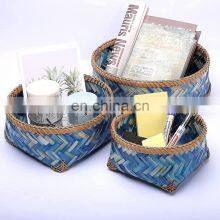 Supplier in Bulk Blue Mini Woven Bamboo Storage Basket Fruit Basket Wholesale Handwoven Made in Vietnam