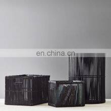 Eco-friendly Black Woven Bamboo Storage Basket Set Laundry Basket Wholesale Handwoven Made in Vietnam