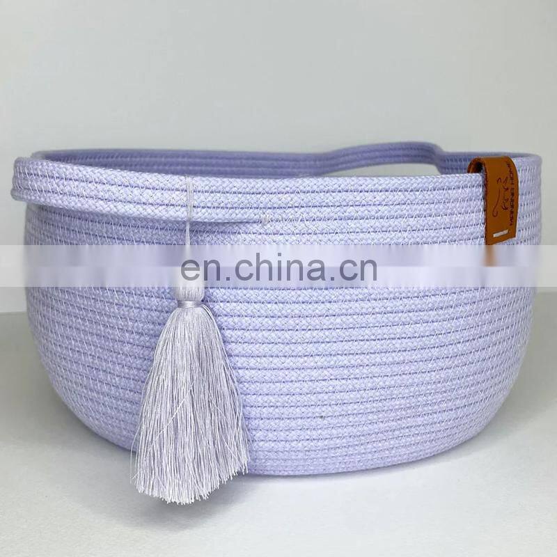 Home > Products > Home & Kitchen Accessories > Home Decor Lavender Color Storage Basket, Round Decorative Basket With Handles. Cotton Rope Basket for Storage and Organization