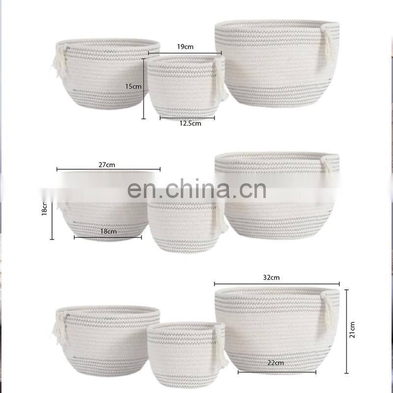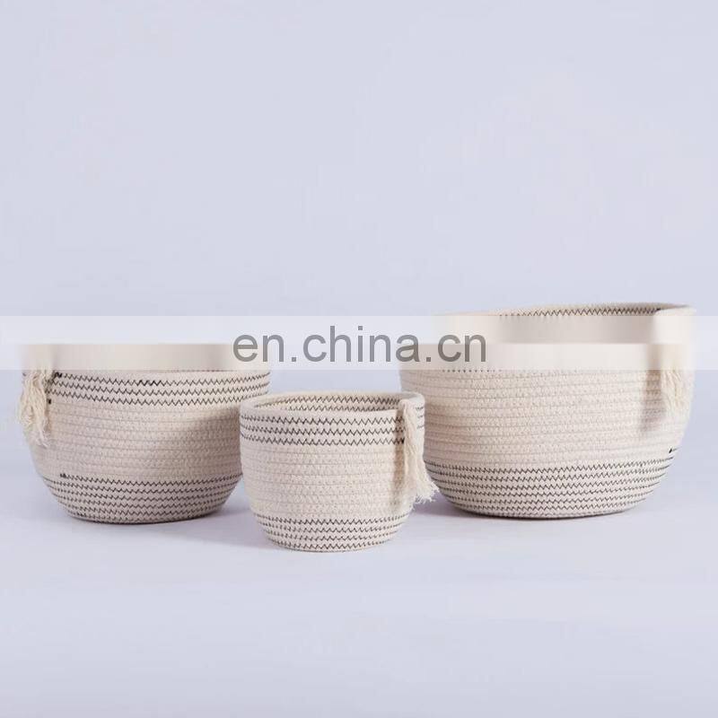 Hot Sale Handmade Cotton Rope Vessels Color Three Sizes Organic Cotton Thread Rope Baskets Vietnam Supplier