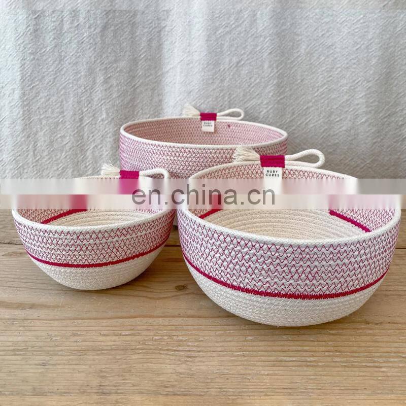 Hot Sale Handmade Cotton Rope Vessels Color Three Sizes Organic Cotton Thread Rope Baskets Vietnam Supplier