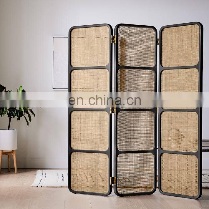 - Home Furniture Customized Wholesale Rustic Natural Wood Rattan Wicker Room Divider With 3 Panels