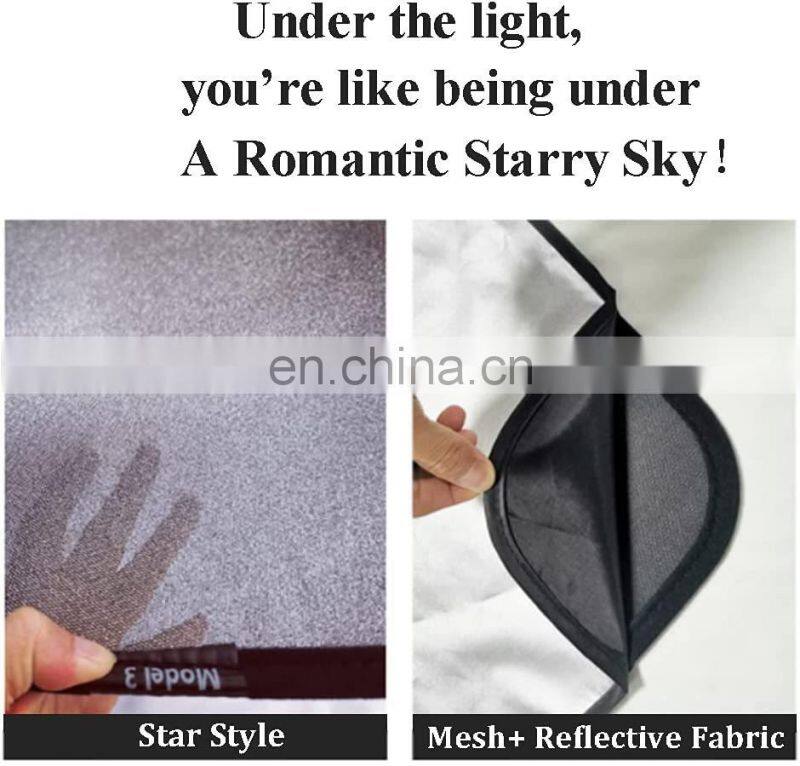 This Model 3 sunshade with eco-friendly Mesh fabric material and high-strength aluminum alloy foldable frame.