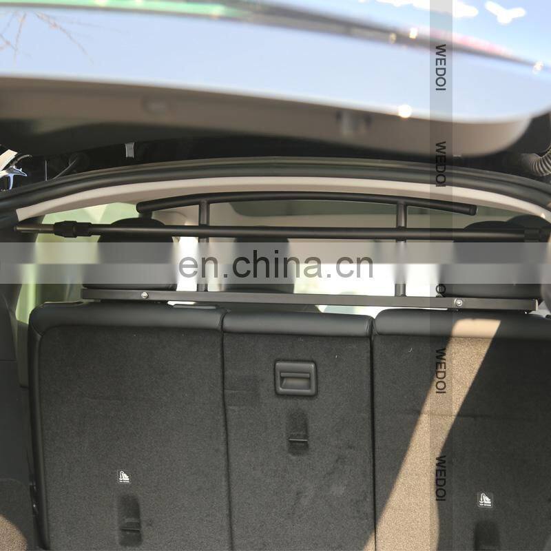 Function | This large pet car barrier safely prevents your pets from jumping into the front seat, which not only decreases driving distractions but also keeps your pet and all passengers (especially kids) safe during the trip. 1. Keep your pet safe in place in the cargo area, preventing it from going to the front seat or distracting the driver during car travels. 2. No more worries about the tidiness of the car upholstery. 3. The sturdy pet barrier, made of aluminum, can withstand the dog's pulling and grabbing, for long-lasting use. |
