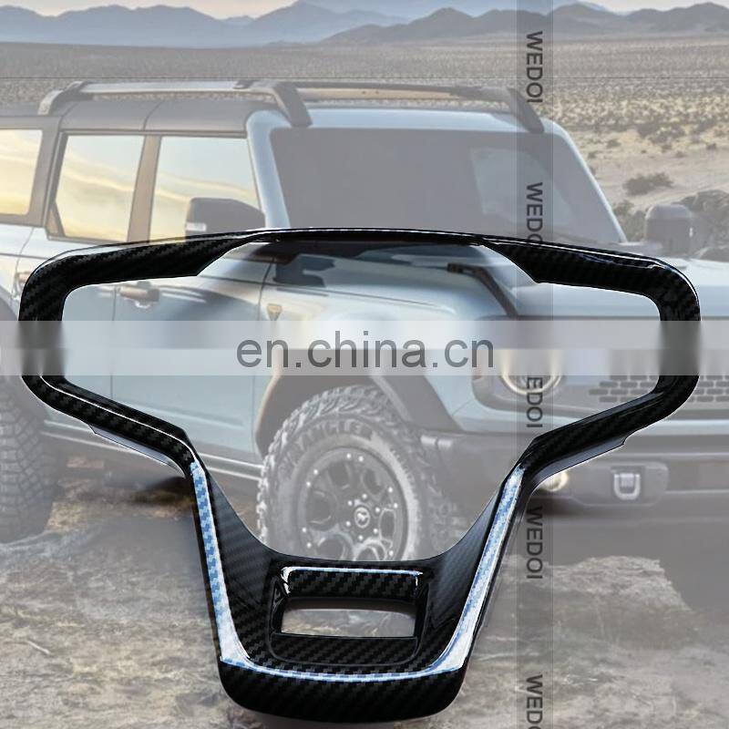 High Quality Car Steering Wheel Decorative Cover Trim Decal for Ford Bronco Accessories ABS Carbon Pattern