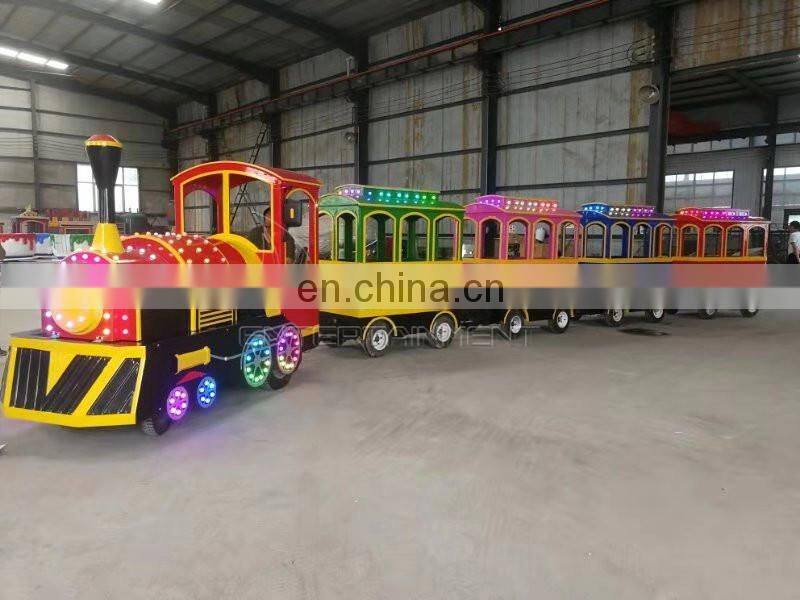 Playground attractions amusement equipment electric tourist train game park trains tourist diesel kids trackless train rides