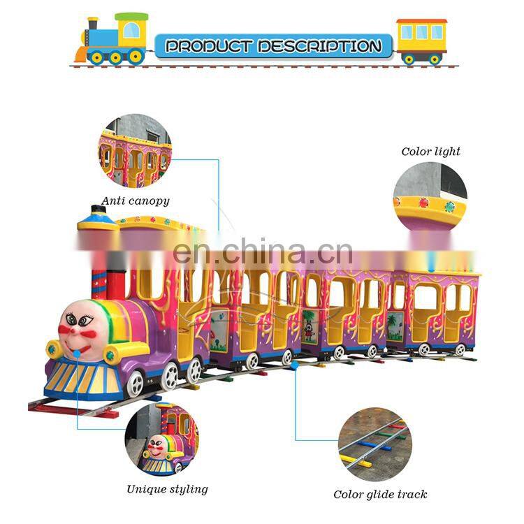 "Amusement park rides kids electric track train rides " is a new type of amusement park rides for kids,which drives on the interchange track. It consists of beautiful shaped, composition of different styles, mighty fleet of sports cars. Each driver runs simultaneously, along the track direction of automatic steering. Characterist