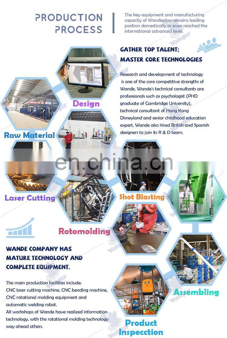 Function: | The entertainment facilities we designed have the psychological needs of participatory and challenging, imitation and exploration.Outdoor playgrounds are indispensable with educational games and rich entertainment functions, which can stimulate children's curiosity, exercise children's thinking and hands-on problem solving skills, and promote children's ability to make friends and collaborate. All activities are full of challenges and can meet various requirements for children to participate, compete and explore. |