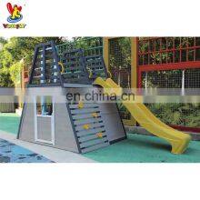 Small Backyard Wooden Playground With Plastic Slide and Climbing Wall