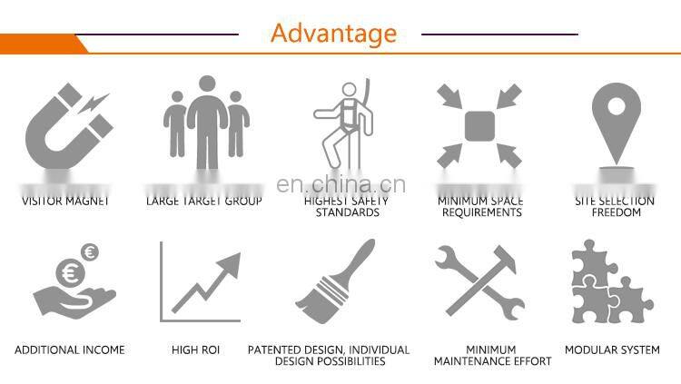 Standard feature | 1.Steel climbing stair 2.Elements or ropes activities 3.Appropriate amount of harnesses for kids or adults. 4.Appropriate amount of Lanyards. 5.Appropriate amount of Triple Step Karabiners. 6.Operator training video or manuals 7.Platform height – Customized or designed as per your site’s height by us |