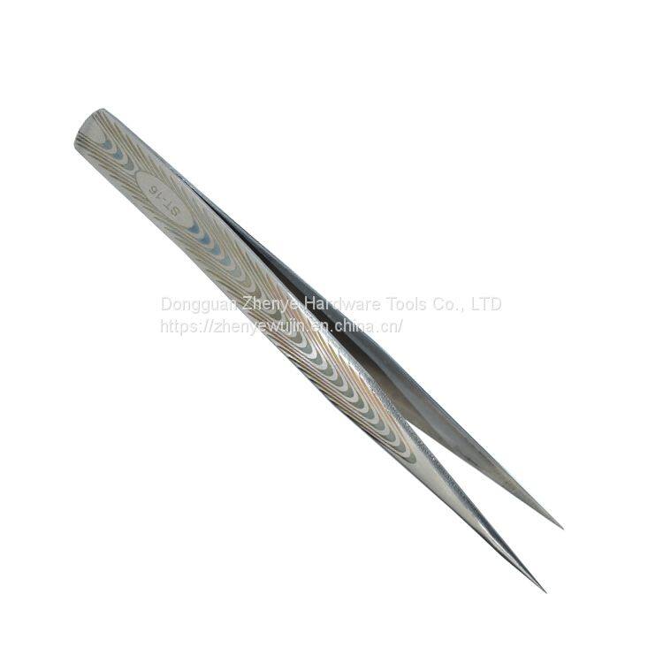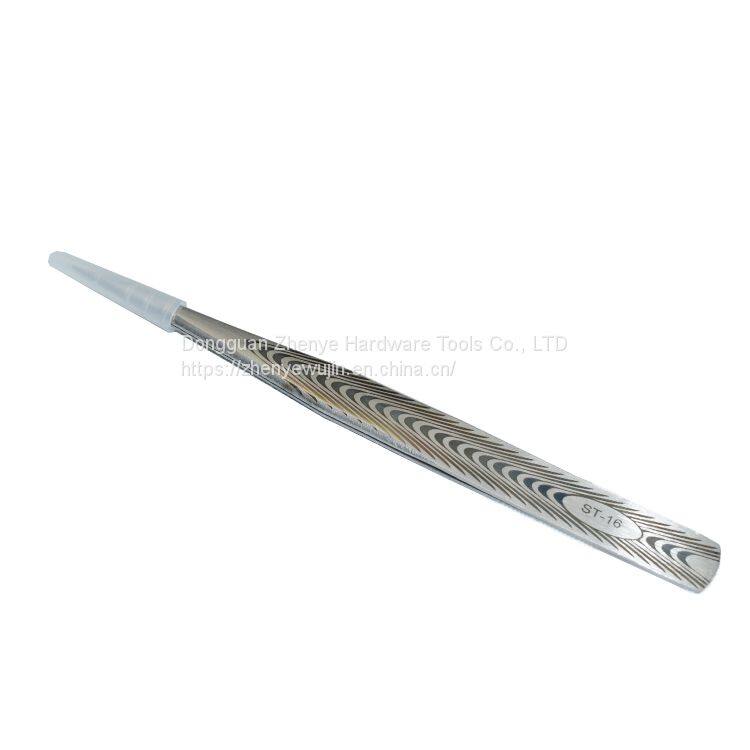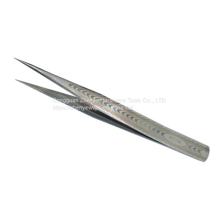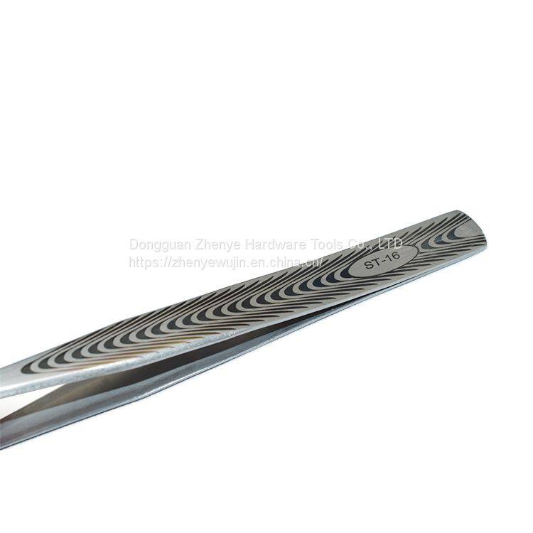 Stainless steel tweezers Corrosion resistant silver stainless steel tweezers All metal clip Pointed elbow Multi specification ST tweezers with texture ST-16