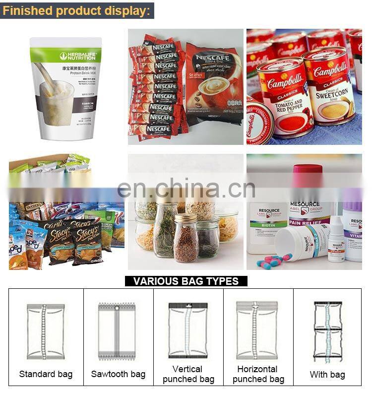 This machine is suitable for packaging fluidity Powdery product like milk powder, albumen powder, solid drink, white sugar, dextrose, coffee powder, rice powder, fodder, pharmaceuticals, agriculture pesticide, granular additive, dyestuff etc in bag,can,bottle package. Stainless steel design, in line with GMP standard, It can do measuring and filling work.