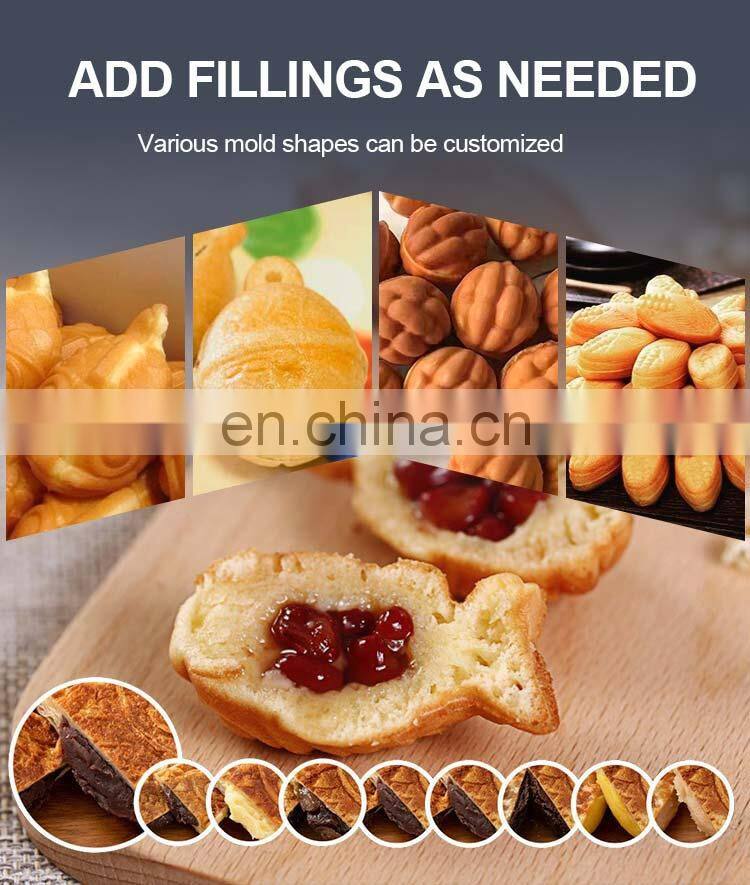 molds, such as fish shape, walnut shape and other shapes. Also can produce different flavors through filling different stuff, such as chocolate taste,strawberry taste, mango taste an so on.The final product can be sold directly on the spot,also can be packed.