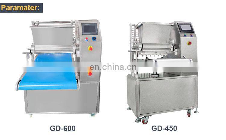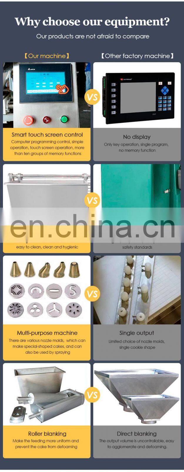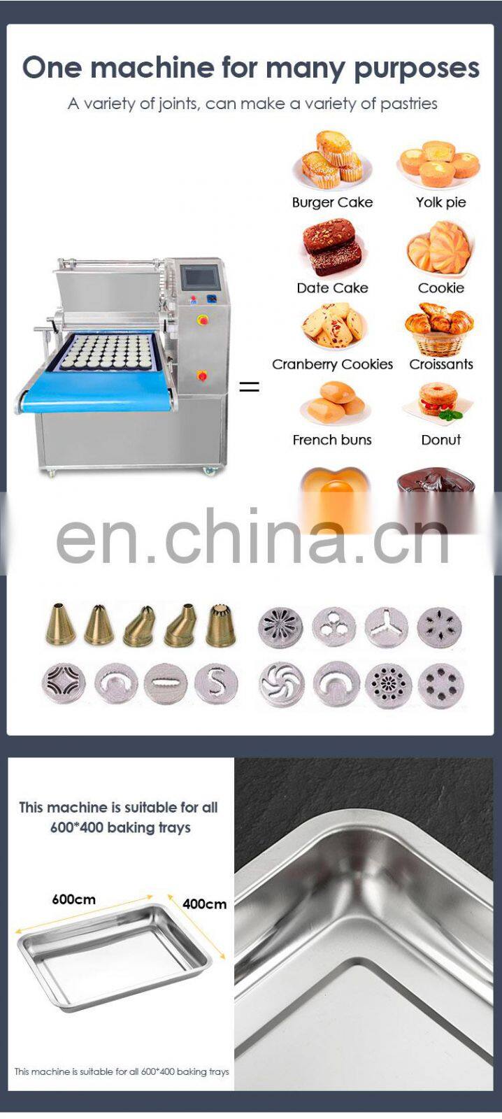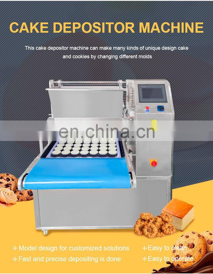 This cake depositor making machine can make many kinds of unique design cake and cookies by squeezing out and taking shape the dough.