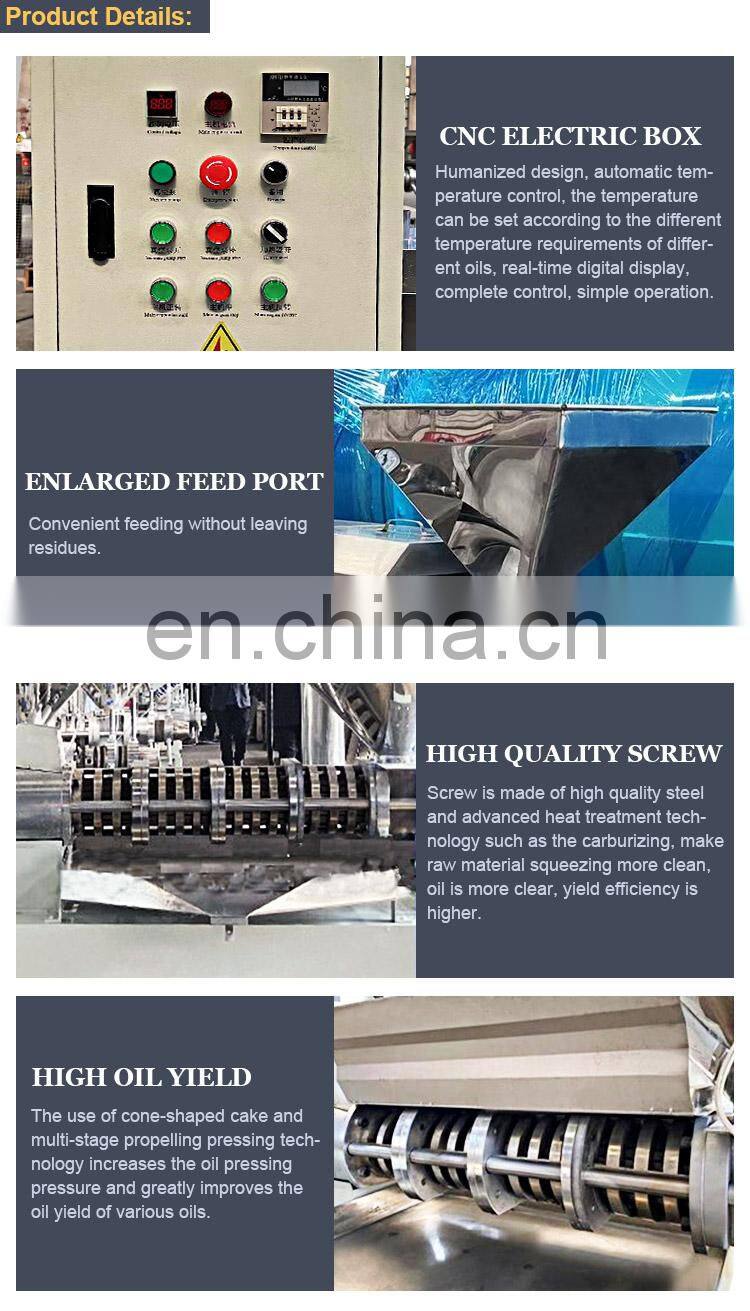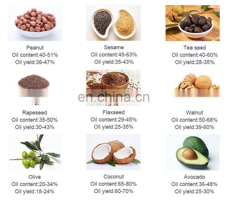 Automatic Soybean Oil Press Machine peanut extraction machine oil presser machine suitable for rapeseed, peanut, soybean, sunflower, rapeseed, sesame seed, tea seed, walnut, olive, corn germ, rice bran, safflower seed, seeds of hippophae rhamnoides and so on.
