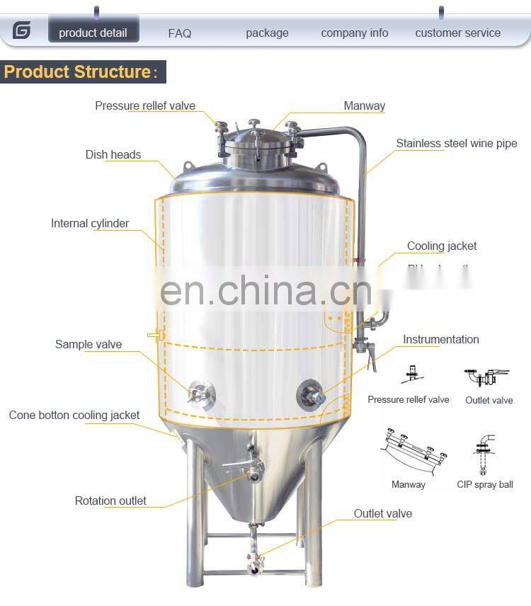 Cheap Homebrew 50l Gin Fermentation 2000l Industrial Horizontal Conical Fermenter Tank 250 65l Fermenting Storage Machine