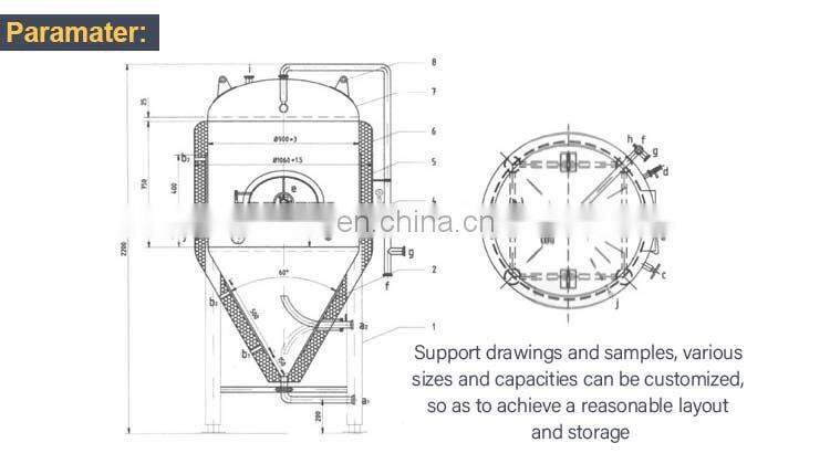 1、The bottom is conical to facilitate the discharge of yeast at any time during the production process, and cohesive yeast is required.