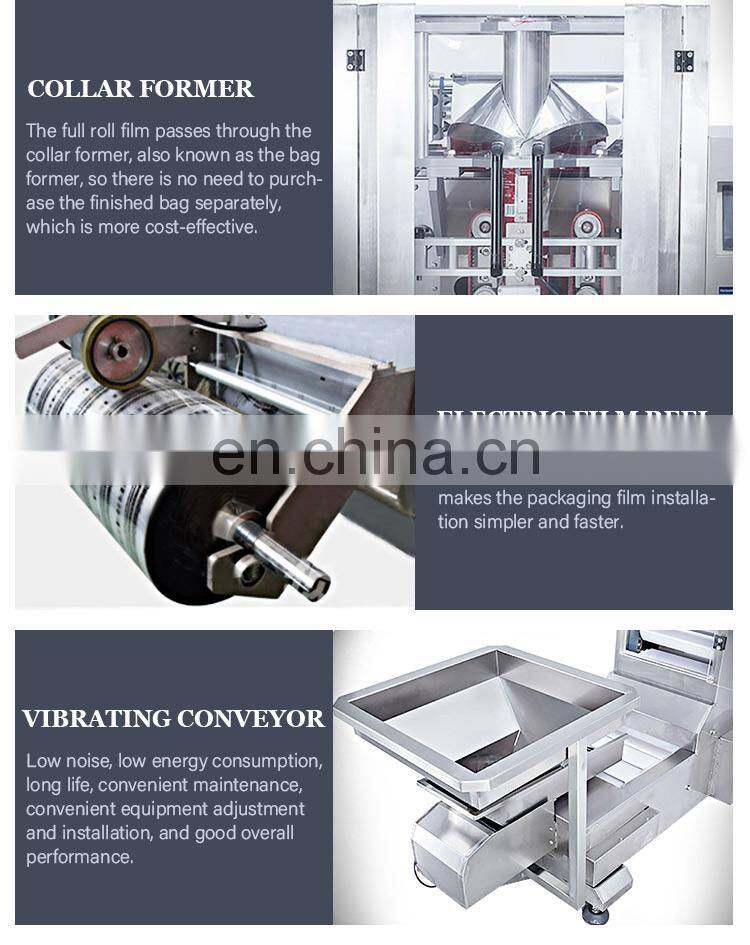 1. PLC control with stable reliable high accuracy output and color touch screen, bag-making, measuring, filling, printing,cutting , finished in one operation.