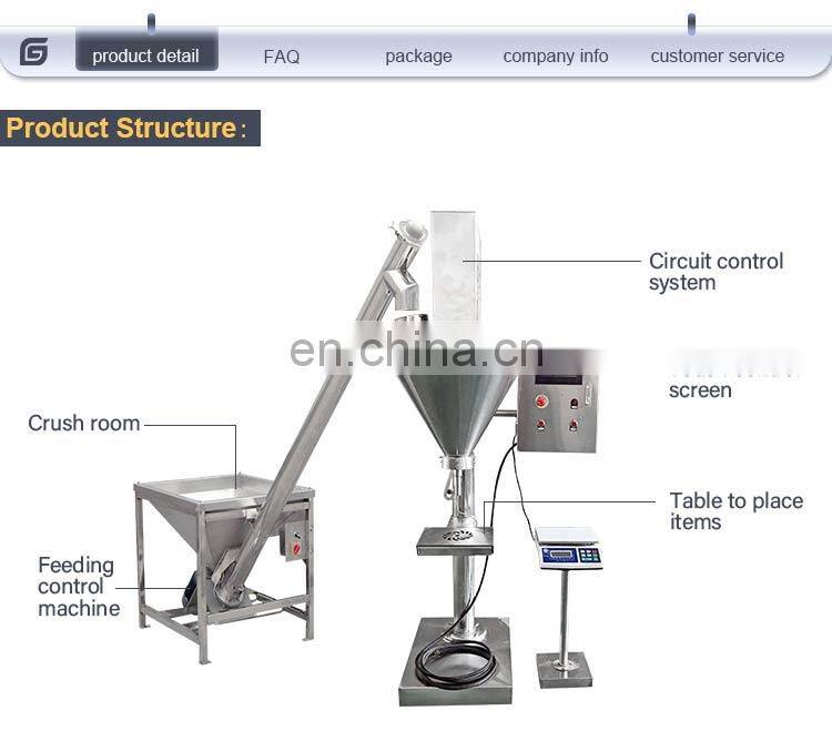 This machine is suitable for packaging fluidity Powdery product like milk powder, albumen powder, solid drink, white sugar, dextrose, coffee powder, rice powder, fodder, pharmaceuticals, agriculture pesticide, granular additive, dyestuff etc in bag,can,bottle package. Stainless steel design, in line with GMP standard, It can do measuring and filling work.