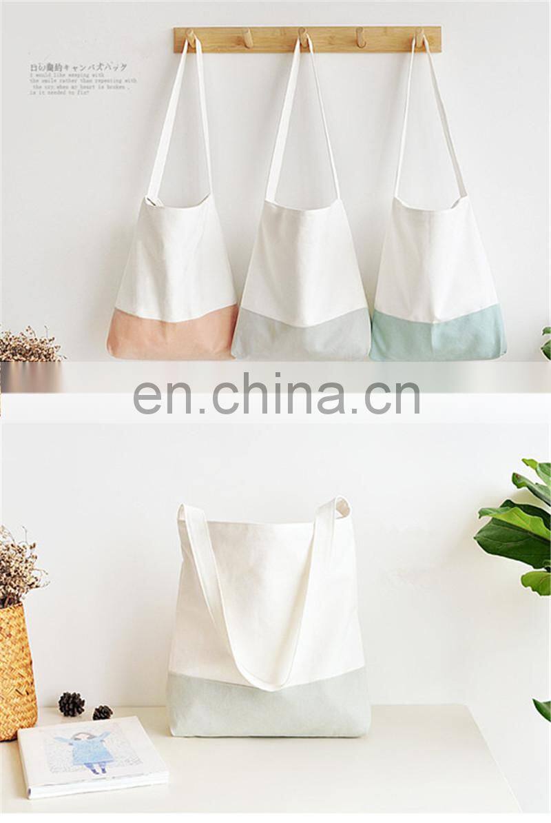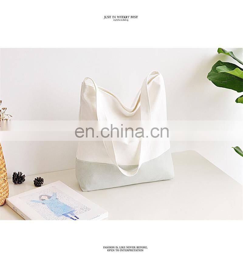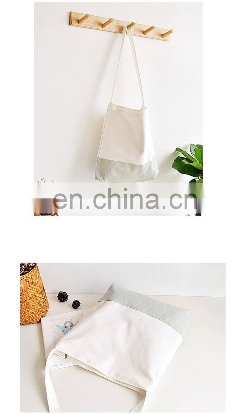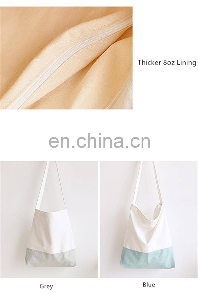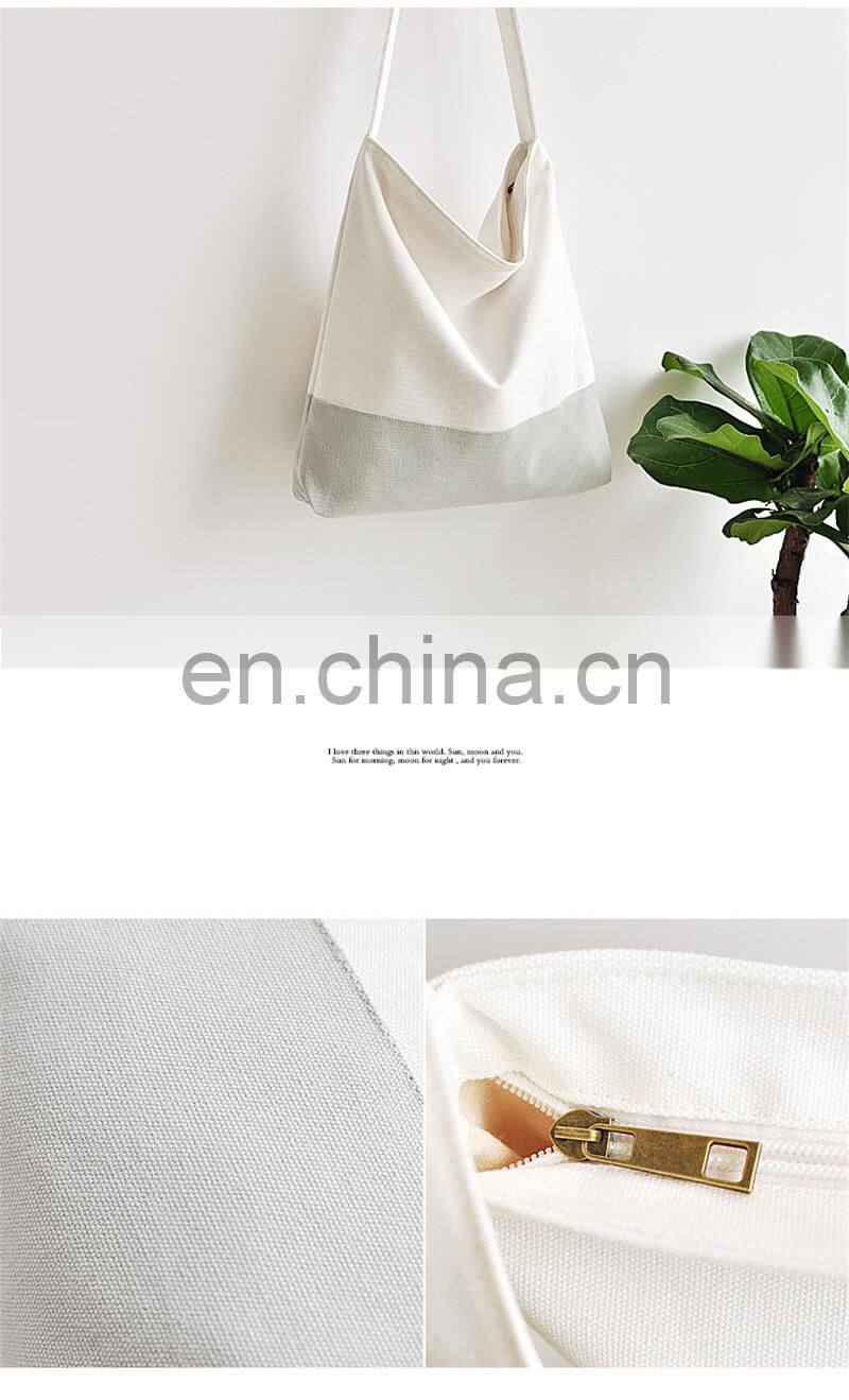 Wholesale OEM High Quality Natural Women Zipper Contrast Color Canvas Shopping Bag Custom Blank Canvas Tote Bag