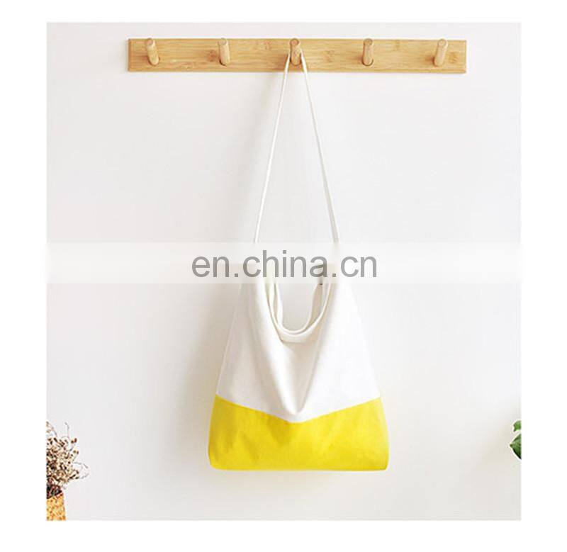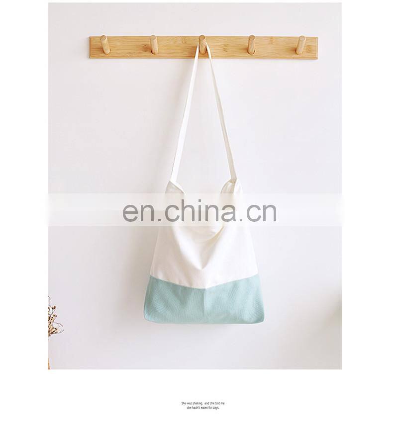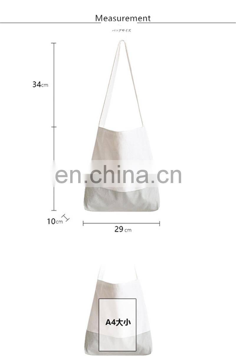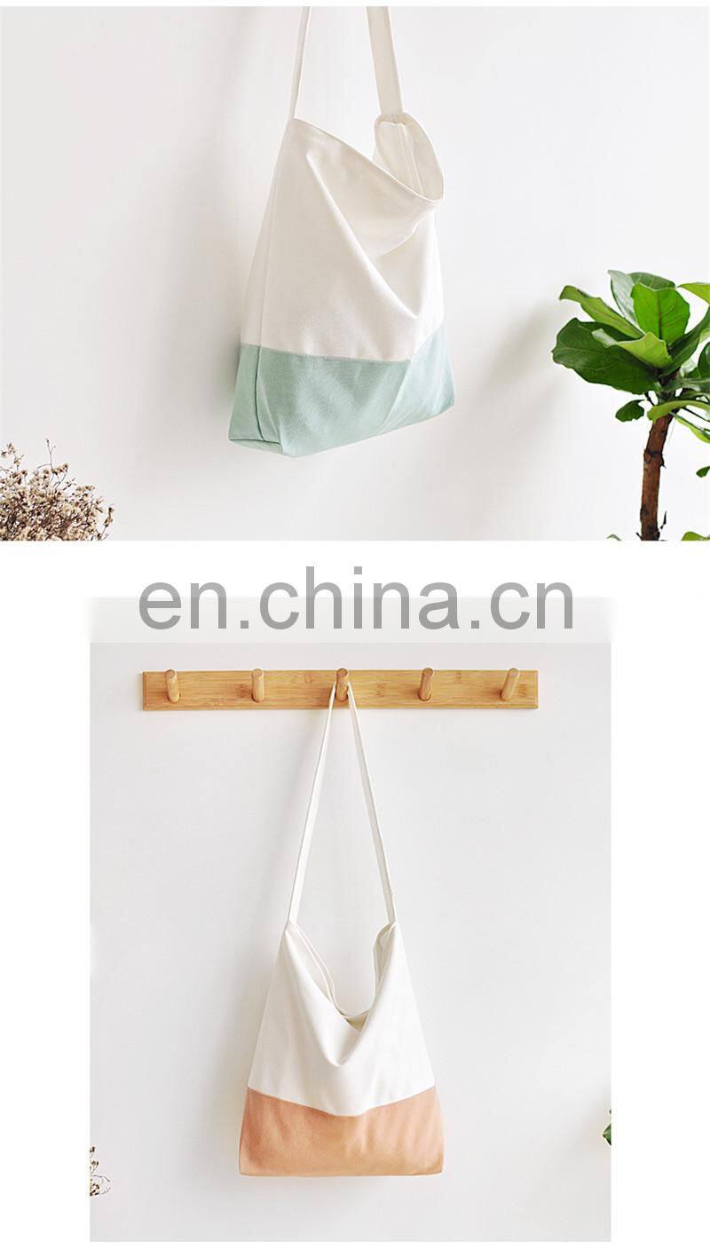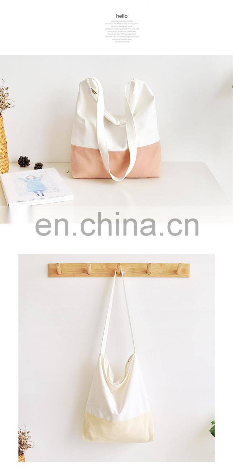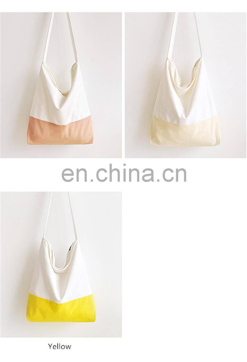 Wholesale OEM High Quality Natural Women Zipper Contrast Color Canvas Shopping Bag Custom Blank Canvas Tote Bag