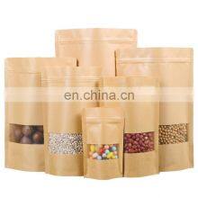 High Quality Resealable Food Packaging Storage Zipper Sealing Stand Up Pouch Plain Brown Kraft Paper Bag With Clear Window