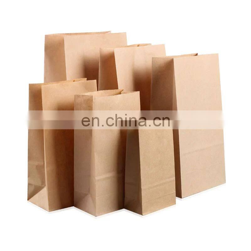 High Quality Custom Printing Logo Food Grade Biodegradable Brown Flat Bottom Kraft Paper Coffee Bread Bag Without Handles
