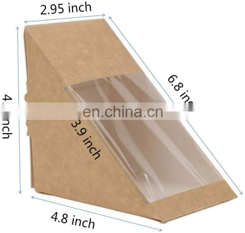 The sandwich box is made of cattle paperboard material, more durable and safe; The paperboard is recyclable and biodegradable,environmentally friendly and hygienic.