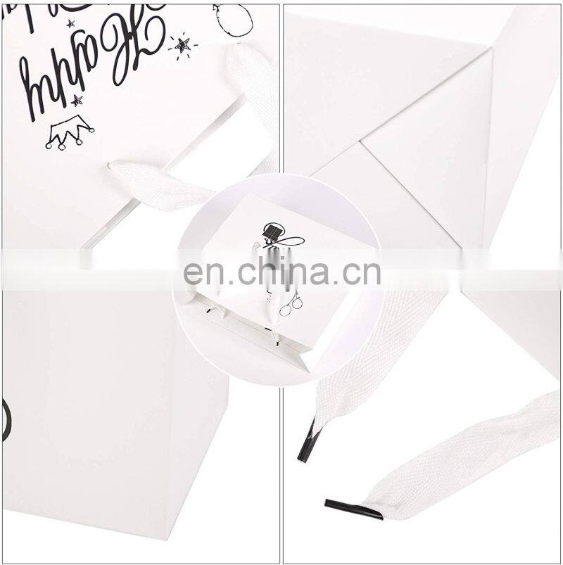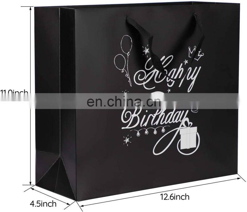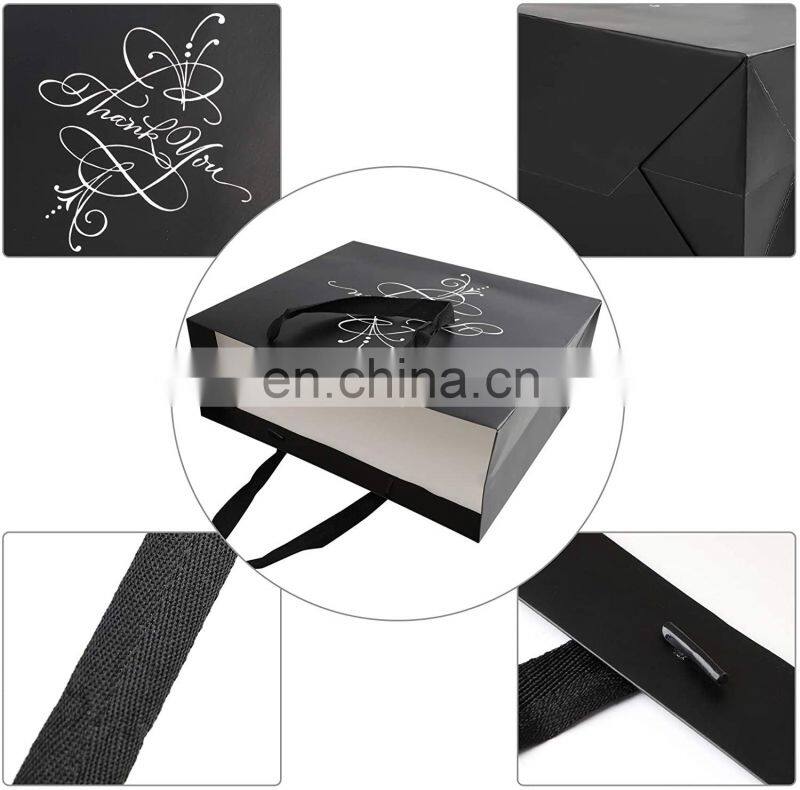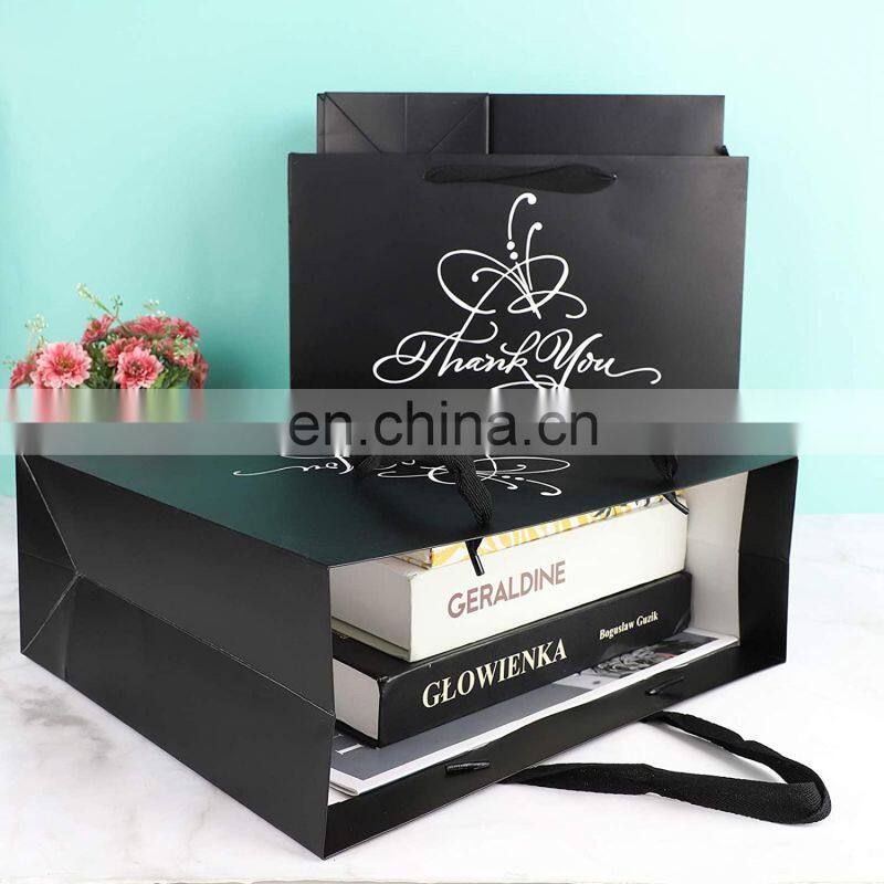Factory Custom Printed Matte Black White Luxury Gift Garment Clothing Paper Shopping Bags With Ribbon Handle