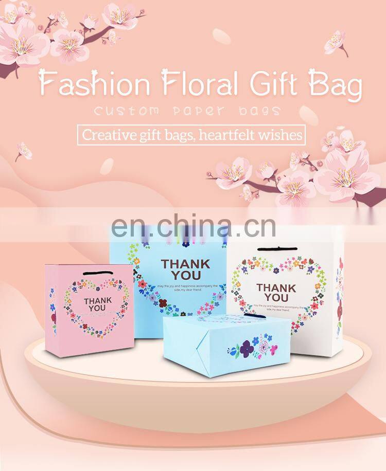 Hot Sale High Quality Customized Fashion Floral Elegant Shopping Gift Paper Tote Bags Thank You Paper Bags With Printed Logo