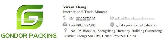 Henan Gondor Packing Materials Co., Ltd. is a comprehensive new-type packaging materials company. Since its establishment, it has sought unity within and development philosophy outside. To ensure that customers first, service first, and serve the society.It is located in No.105 Block B, Zhengshang Harmony Building, Guancheng District, Zhengzhou City, Henan Province, China, with a factory building of 1000 square meters. The company has advanced equipment and automatic flow operations, and professional talents will design perfect and affordable packaging materials for you. We specialize in the production of cartons, paper boxes, paper bags, etc. The company has professional technicians who can design a safe, stable, beautiful and generous packaging scheme for you according to the needs of customers. The company sincerely welcomes customers at home and abroad to visit, visit, inspect, consult and negotiate. Gondor spirit: professionalism, integrity, pragmatism and development; philosophy: quality first, honesty and trustworthiness, mutual benefit and win-win.
