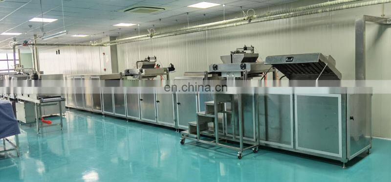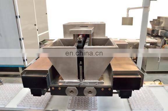 This machine is advanced equipment with mechanical and electric control, special for chocolate moulding line with coating line . The whole production line is automatic working including mould heating, depositing, vibrating,coating powder sprinkler and so on. This machine produces smooth and nice chocolate,including pure chocolate, chocolate with center filling,. Also,with servo system, the pouring ration is much more accurate. This machine will be the best choice for chocolate production.