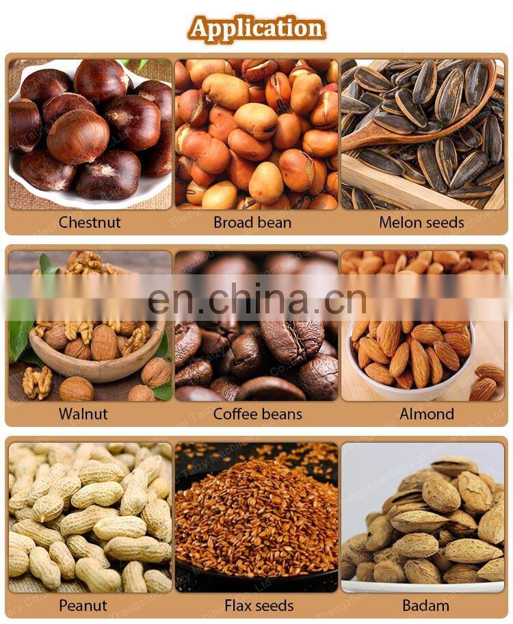 1. Rotary drum nuts roasting machine mainly used for peanuts, chestnuts, walnuts, almonds, swallow beans, coffee beans, sesame seeds, melon seeds and other granular nut foods.