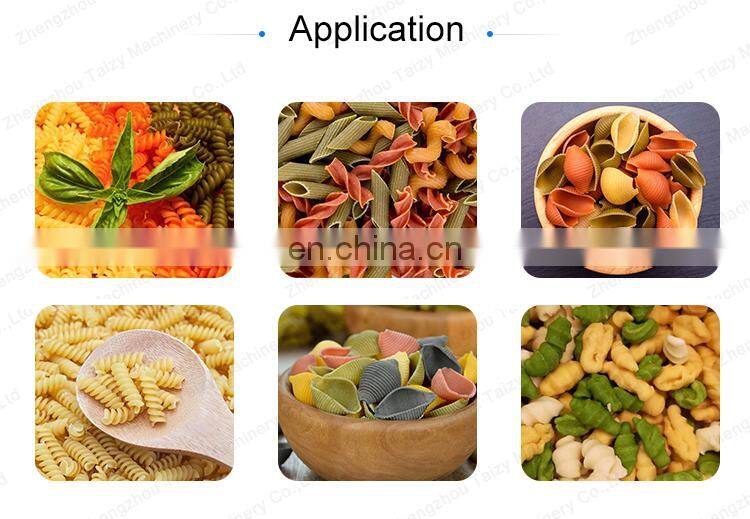 The processing technology of pasta machine is extruded by single screw. Its biggest advantage is that it can replace various molds and supporting equipment to extrude hollow shape, solid thin noodles, spiral shape, shell shape, bend tube and other varieties.
