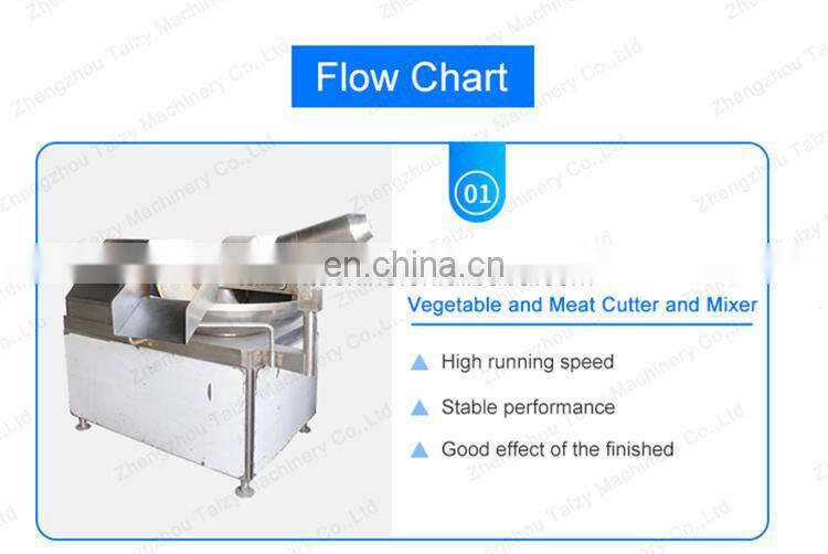 Put vegetables or meat directly into the machine, turn on the switch, and the machine runs normally, with high work efficiency and convenient operation. The high-speed rotation of the blade ensures that the fineness of the cutting of the material is good, the heating degree is small, the cutting time is short, and the finished filling is uniform and delicate.