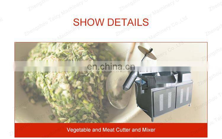This machine uses a high-speed rotating blade to quickly mix vegetables and meat into fillings or small particles, and can also be used to cut fruits and other materials.