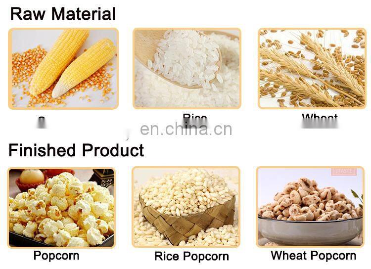 electric popcorn maker is a kind of grain puffing equipment, which is composed of a puffing tank body, a heating device, a rotating device, a safety protection device, a vibration damping device, a frame and a base. It is based on the traditional fire-expanded cans and is technically transformed. Compared with the traditional small airflow puffing tank, the output is increased by 4-6 times, the safety factor is greatly improved, the operator's labor intensity is reduced, and the energy consumption is reduced. At present, rice, millet, wheat, barley, bitter buckwheat, corn, sorghum, coix seed, buckwheat, beans and other grains have been found to be puffed as long as the starch-containing material can be expanded.