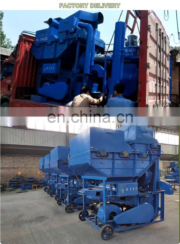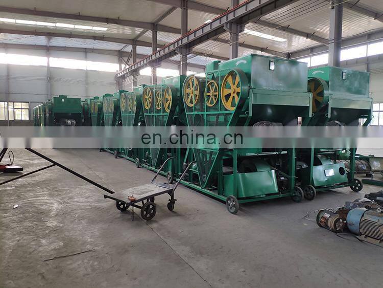 1. It is composed of a host frame, a main feeding hopper, four rollers with left and right spiral plates,four cages, three motor,a sorting screen box, a rear fan, a secondary feeding fan, a two-roll feeding air duct, pipes and other components.
