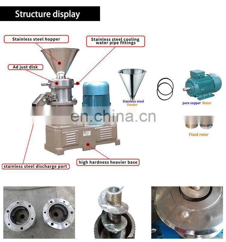 Mainly used for various peanut butter, silky, flavor, sweet and salty, peppery, sesame paste, its biggest advantage is high output, and can be directly to the whole peanut grinding paste. Also apply to milk, peanut milk and dairy protein, essence, all kinds of beverages, aloe, pollen walls, pineapple, ice cream, moon cake stuffing, butter, conserve, fruit juice, etc.