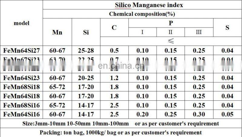 Silicon Manganese 6517 6014 High Silicon Manganese FeMn64Si23 Factory Supply Grain Size 10-50mm Size Can be Processed