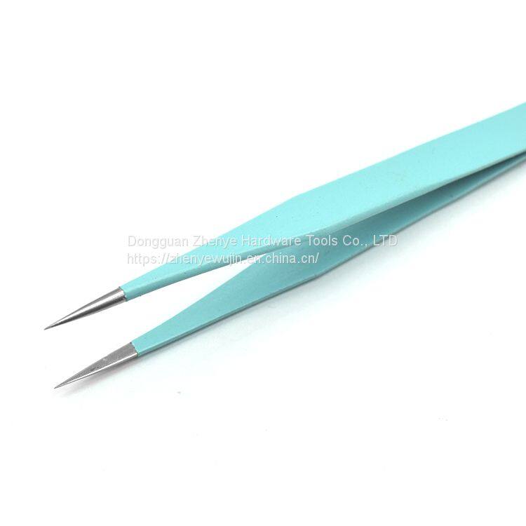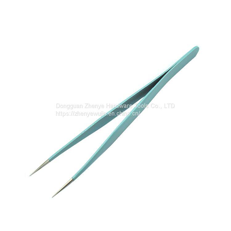 Colorful makeup eyelash tweezers high-quality stainless steel acid and alkali resistant blue straight head tweezers sticker
