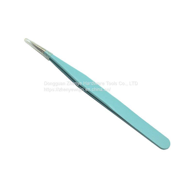 Tweezers Industrial Flat Head Carbon Fiber Plastic Anti-static Elbow Black Plastic Round Head Pointed Tweezers Flat Head 93306NegotiableMOQ: 100 Pieces