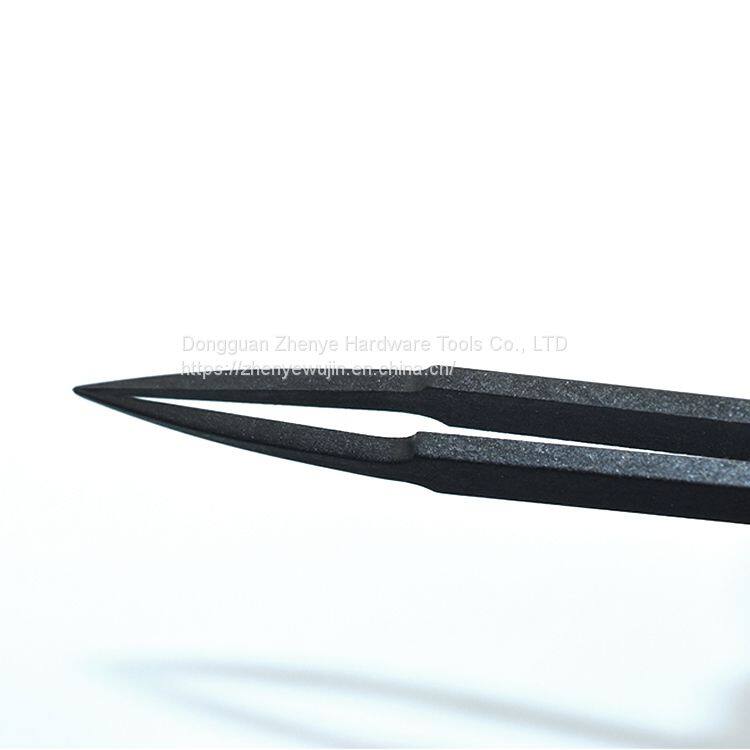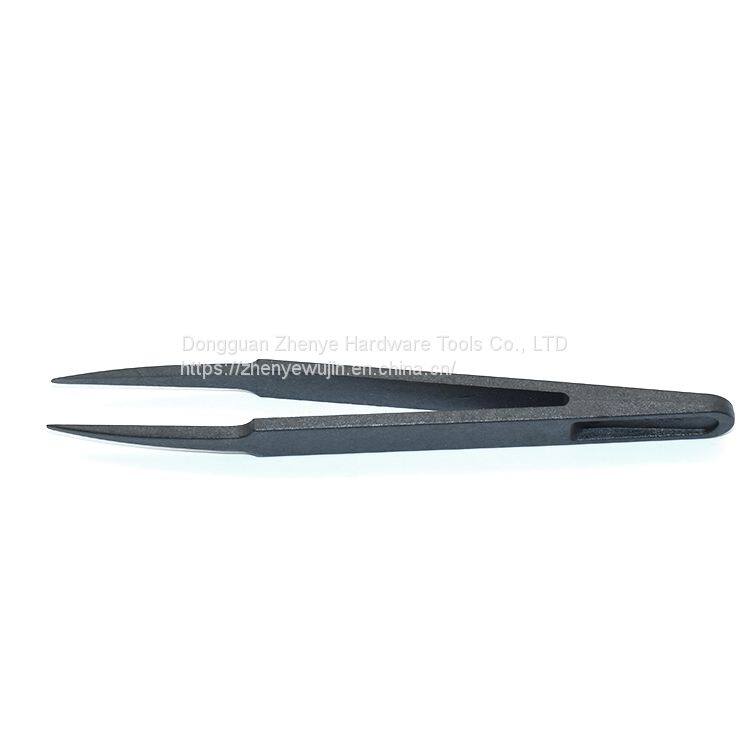 Plastic tweezers black flat head elbow pointed flat nose round head plastic anti-static tweezers clamping tool 93303