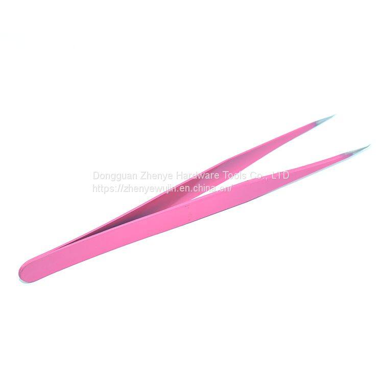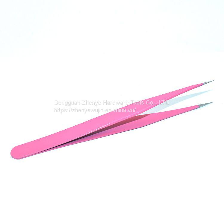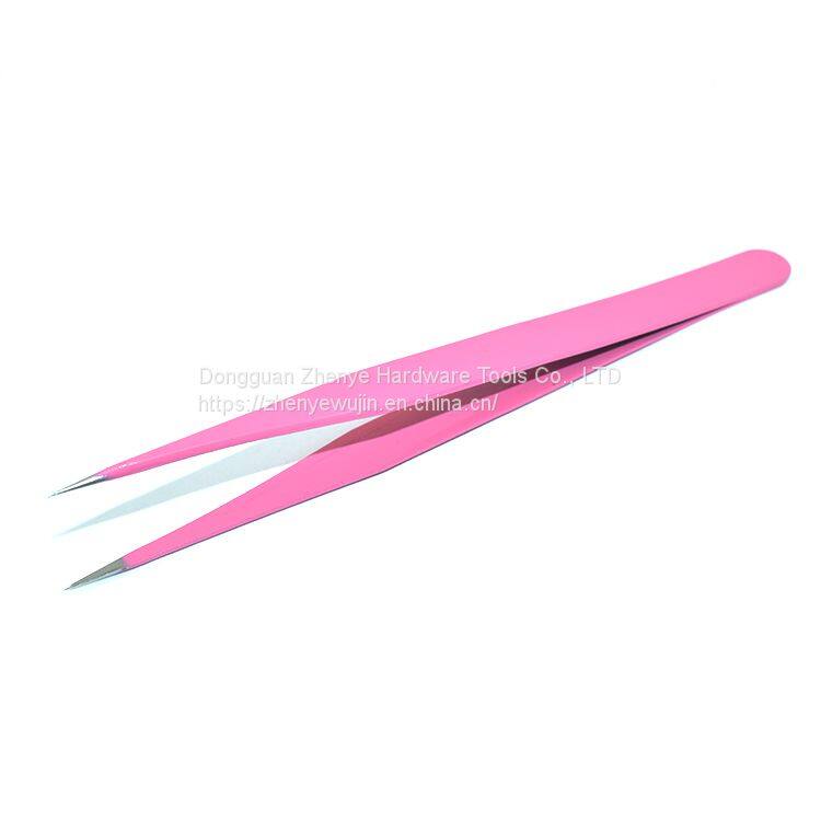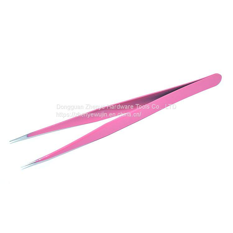 Metal tweezers Deep pink straight head tweezers Crystal glue diy Handmade tool material Straight head tweezers