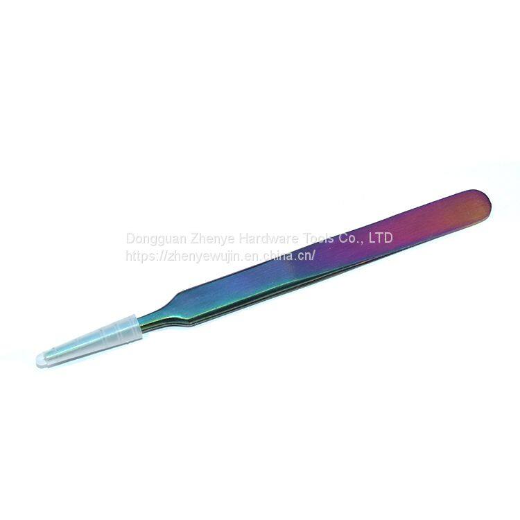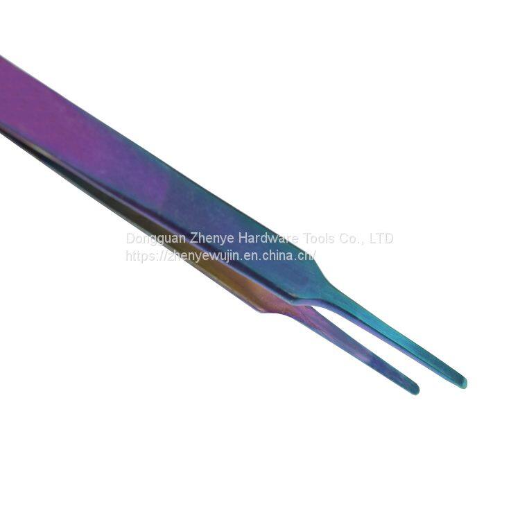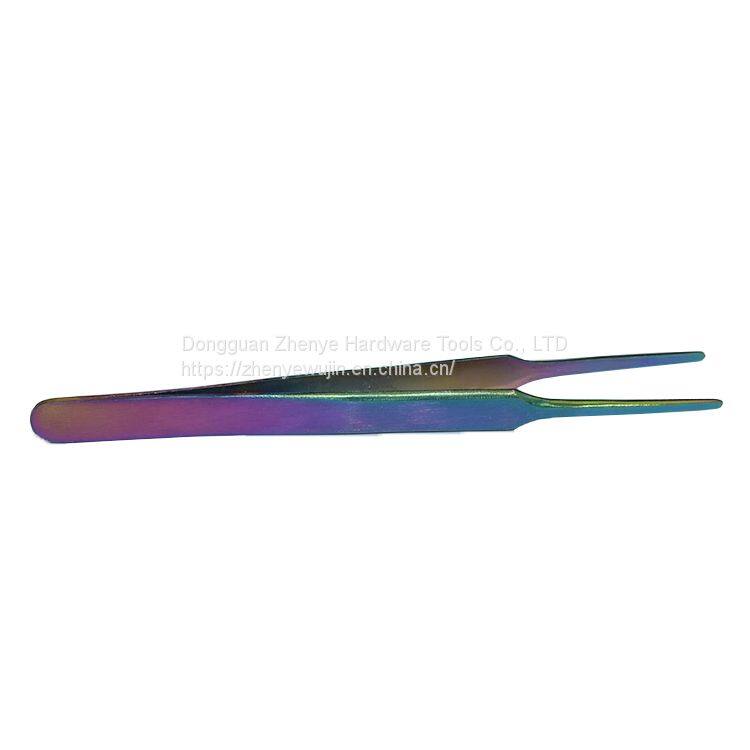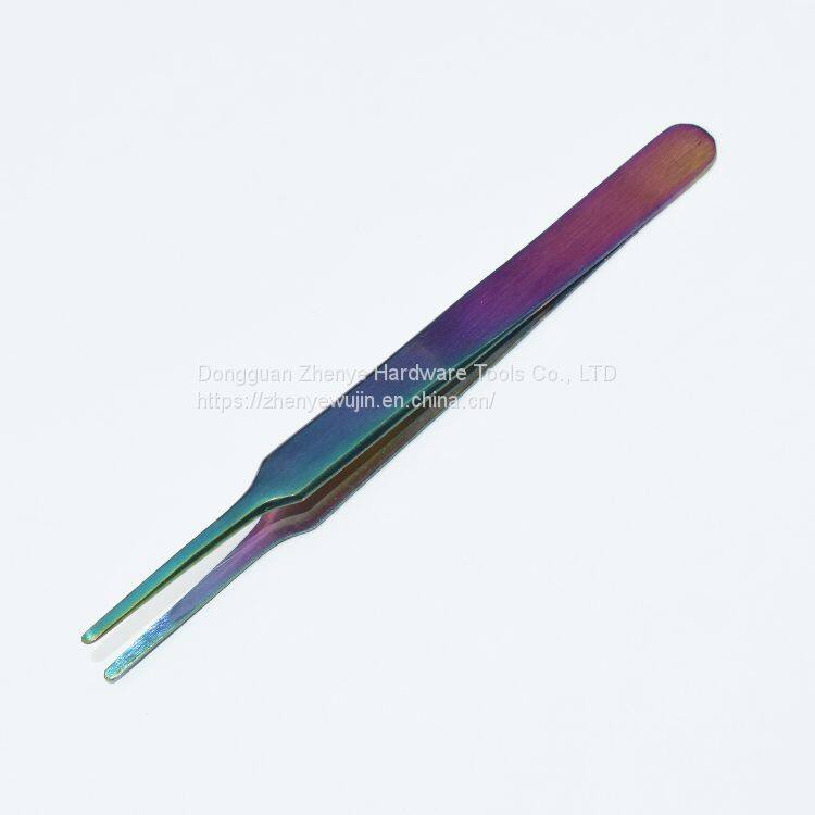 Colorful flat mouth tweezers anti-static stainless steel high-precision clip stamp plucking hair phone maintenance thickened flat head tweezers 13 tweezers