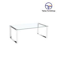 Tiptop Living Room Furniture Modern Clear Glass Top Coffee Table With Brushed Stainless Steel Base