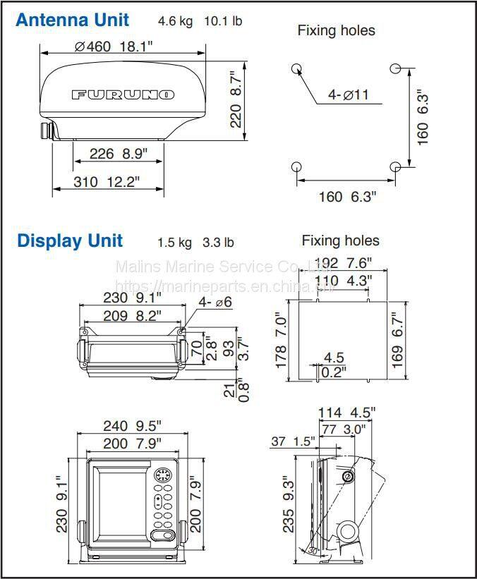 Furuno 1715 Series Marine Radar 7 Inch Monochrome LCD Display, With Standard Accessories