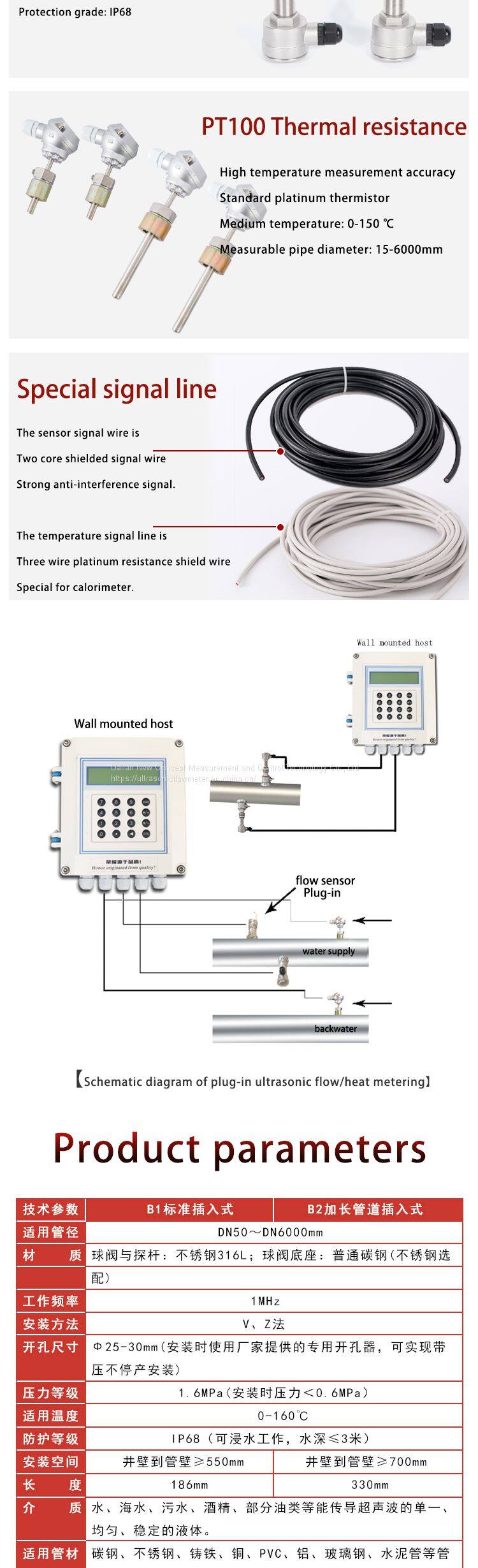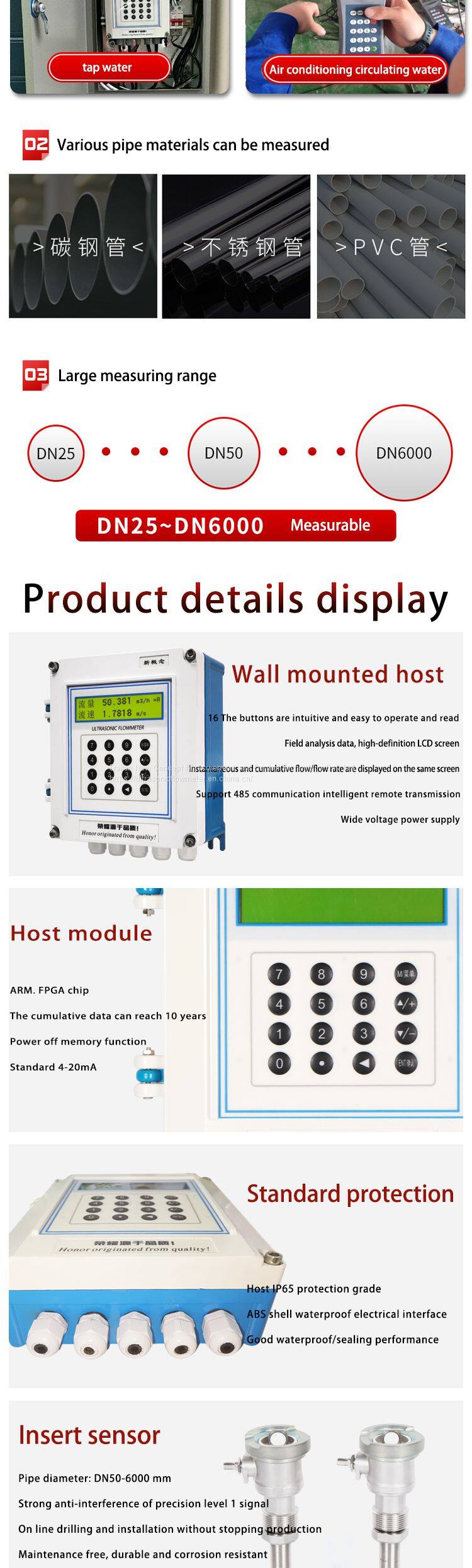 New Concept Wall Mounted Ultrasonic Flowmeter Insertion Ultrasonic Water Flow Meter